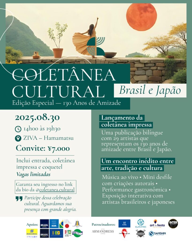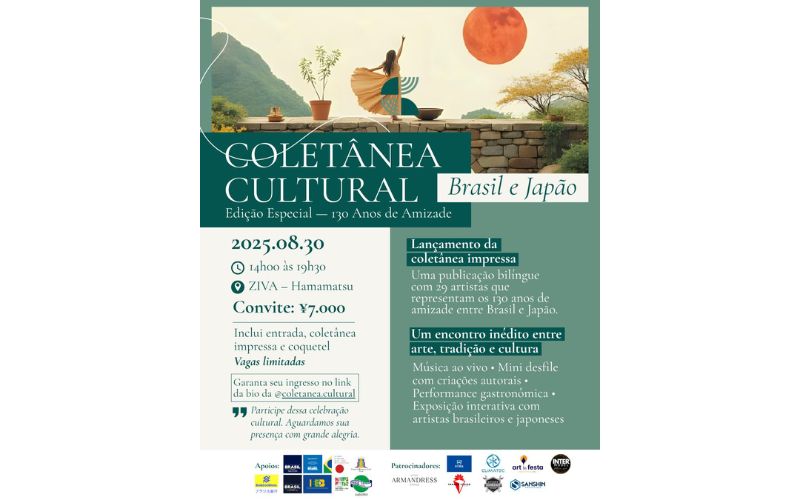 Em comemoração aos 130 anos do Tratado de Amizade, Comércio e Navegação entre Brasil e Japão, será lançada a Coletânea Cultural Brasil e Japão – Edição Especial, uma obra bilíngue, impressa e institucional, que homenageia este marco histórico por meio da arte e da cultura.