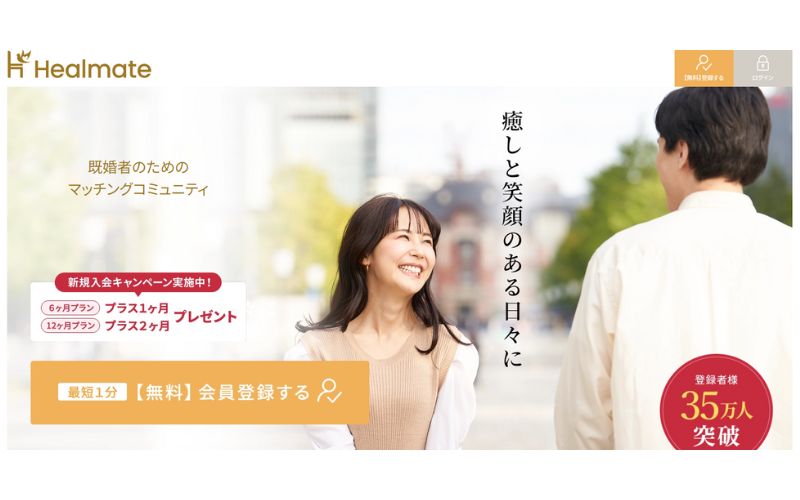 O Healmate (ヒールメイト) é um serviço de matching japonês onde apenas pessoas casadas podem se cadastrar. O registro é gratuito, mas os recursos mais avançados são pagos, e o site chega a declarar mais de 350 mil usuários.