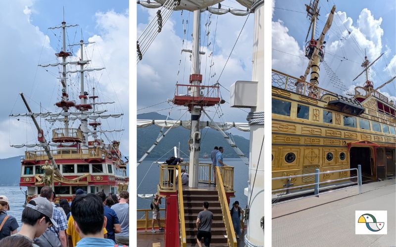 Chamado de Hakone Sightseeing Cruise, o tour acontece em barcos estilizados como navios piratas, que cruzam o Lago Ashi em rotas que ligam os portos de Togendai, Hakone-machi e Moto-Hakone. Durante o trajeto, é possível apreciar cenários de tirar o fôlego, incluindo o famoso torii vermelho do Santuário Hakone e, em dias claros, a vista majestosa do Monte Fuji.
