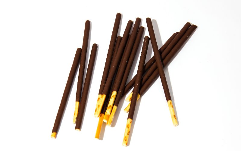Por fim, a empresa decidiu deixar uma parte do palitinho sem cobertura de chocolate, criando uma espécie de “cabo” para segurar. O novo produto foi batizado de “Chocotekku” (チョコテック), o nome veio de “tekuteku” (テクテク), uma onomatopeia japonesa que representa o som ou ritmo de alguém caminhando. No entanto, o nome precisou ser abandonado, pois já havia sido registrado por outra empresa.